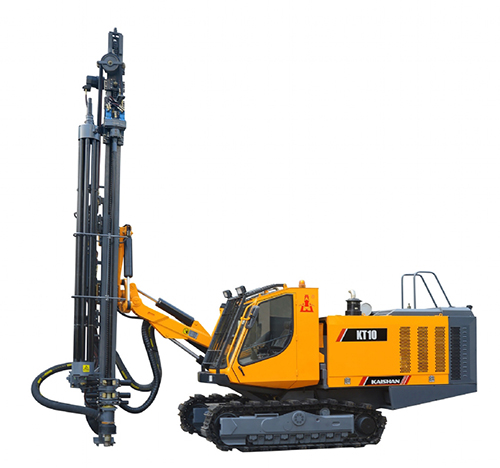 KT10型一體式潛孔鉆車以康明斯國三柴油機為單一動力,通過兩端輸出的方式同時帶動螺桿壓縮系統和液壓傳動系統,可鉆鑿φ90-125mm垂直、傾斜和水平孔,主要用于露天礦山和石方工程鉆鑿爆破孔和預裂孔等。鉆車配有自動接卸桿系統和鉆桿潤滑模塊,可實現單人操作,減少礦山作業人員。鉆車主操縱動作集成在一個手柄上,操作簡單,配有防卡鉆系統,并可選配鉆孔角度和深度指示,簡化了鉆孔過程控制并改善成孔質量。高效的集塵系統、寬敞的駕駛室、大功率冷暖空調和優質的音響設備提供了優質的操作環境,最大限度提高操作人員工作效率。