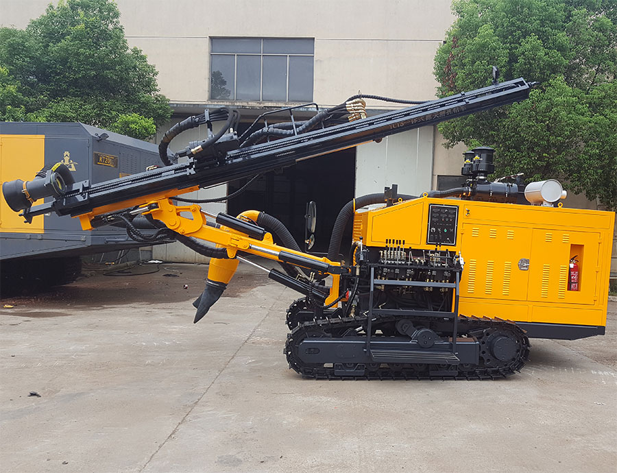 "開(kāi)山"牌KT5/YCT5型一體式露天潛孔鉆車(chē)是將潛孔鉆鑿系統(tǒng)和螺桿空氣壓縮系統(tǒng)融為一體的先進(jìn)鉆鑿設(shè)備,結(jié)構(gòu)緊湊,整體性好,移動(dòng)方便。該鉆車(chē)具有節(jié)能高效、安全環(huán)保、機(jī)動(dòng)靈活、操作方便、性能穩(wěn)定等特點(diǎn)。具體表現(xiàn)如下: