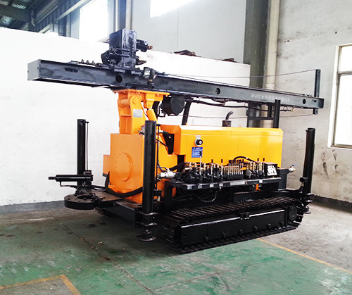 配套大扭矩液壓馬達回轉以及大缸徑液壓油缸推進,名廠發動機為液壓系統提供動力,兩級空濾以及空壓機進氣設計,延長柴油機的使用壽命。獨特的泵組設計方便維修,降低維修成本。集中控制的液壓操縱臺,方便操作。該鉆機采用工程機械專用履帶底盤,越野性能強。獨立的模塊設計,可使鉆機裝在卡車上,增加其機動性。組合式的定位器,可根據不同型號的鉆桿和沖擊器進行調整更換定位盤,保證定位定心準確、可靠。
