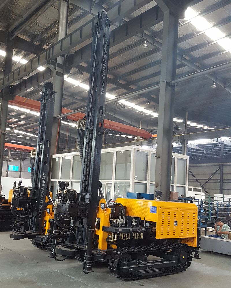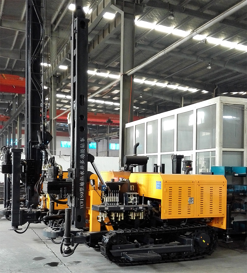 KW180/YCW180型地熱水井多功能鉆車是一種輕型、高效、多功能的鉆鑿孔設備。具配備玉柴四缸國三發動機,有結構先進、使用方便、作業效率高、可靠耐用等特點,廣泛適用于鉆鑿水井、農業灌溉井、地熱空調孔及其他用途的井孔,尤其適用于山區和巖石地層的取水工程。該鉆車采用新型液壓技術,配套大扭矩液壓馬達回轉以及大缸徑液壓油缸推進,大幅降低了勞動強度,縮短了輔助時間,提高了施工效率和工程質量。