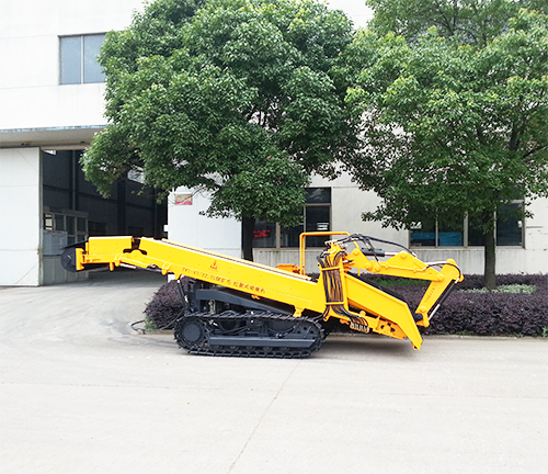 Its reliable and practical crawler traveling chassis can suit various rugged and complicated ground surfaces, with tough traveling safety and strong traction, and without any worry about flat tire. It can also make spot turn flexibly. Equipped with a folded transmission rack, it can freely travel in laneways.