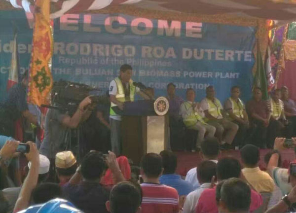 菲律賓新總統杜特爾特參觀使用開山股份發電技術和裝備的菲律賓生物質發電項目現場